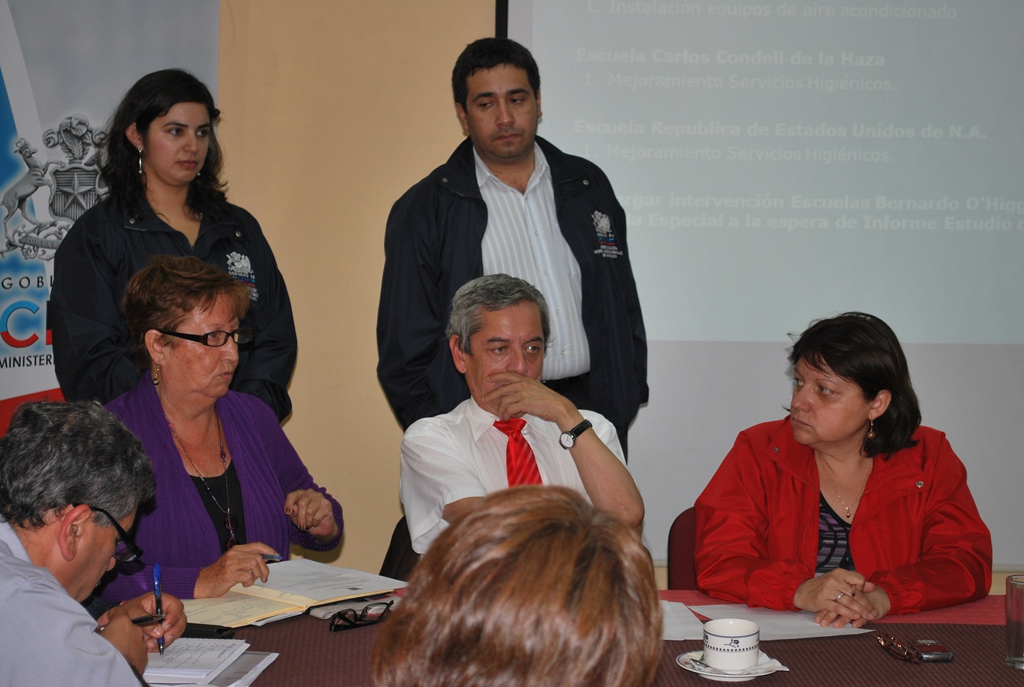 Roberto Valera, Director de Escuela Pablo Neruda, en reunión con seremi y dirigiéndose a Norma Tejada: